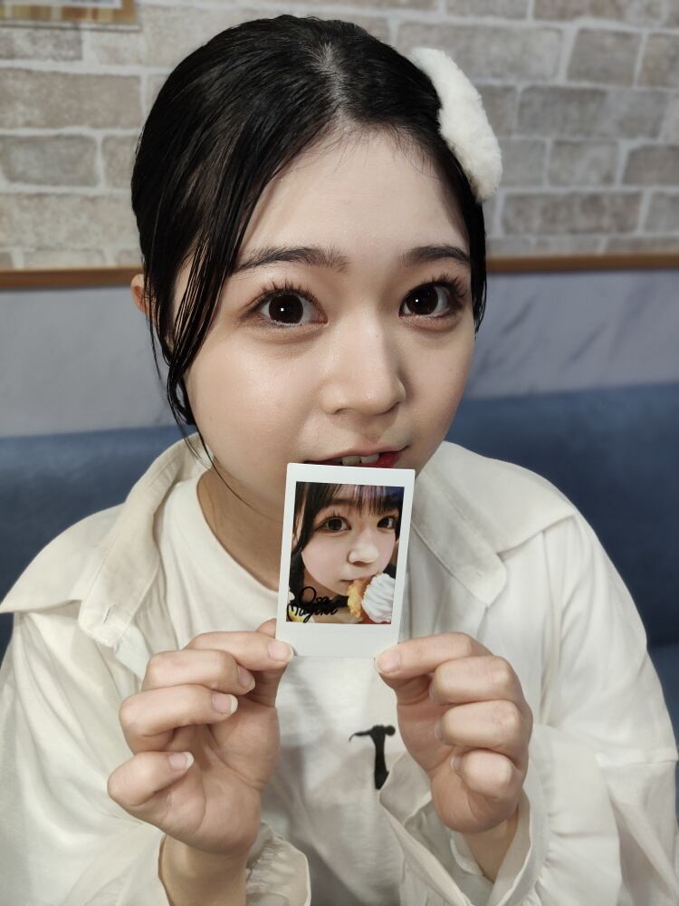 背景まで明るく綺麗に写った状態のチェキに長真由美直筆のサインと一言コメントを入れてお届けします!
